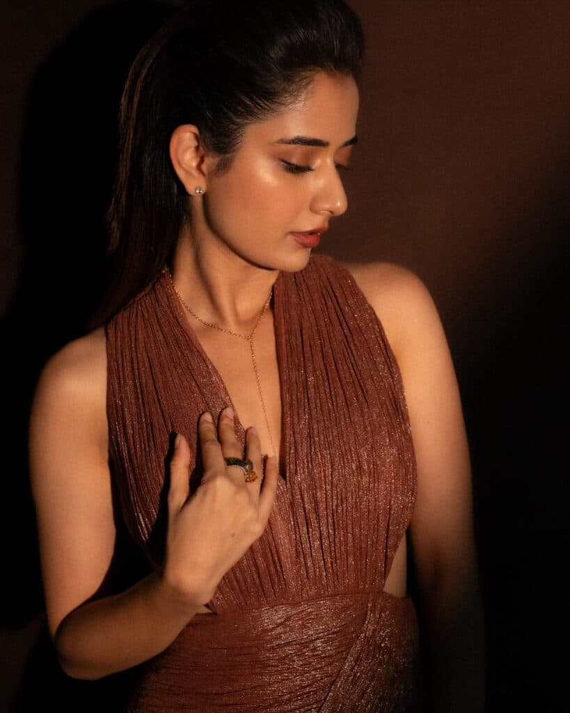 షిమ్మర్తో మెరిసే గౌన్లో అశికా అద్భుతంగా కనిపిస్తోంది. హాఫ్ ఓపెన్ కార్ డోర్, మృదువైన లైటింగ్, ఆమె ముఖంపై పడిన గ్లో ఇవన్నీ కలిసి ఫోటోలకు సహజమైన లేట్-నైట్ వైబ్ను ఇస్తాయి. రెండో ఫోటోలో బ్లాక్ కార్ పక్కన నిలబడి ఉండగా, ఆమె తనలో తానే మునిగి ఉన్నట్టు కనిపించడం ఆ ఫోటోలను మరింత సినిమాటిక్గా మార్చింది.