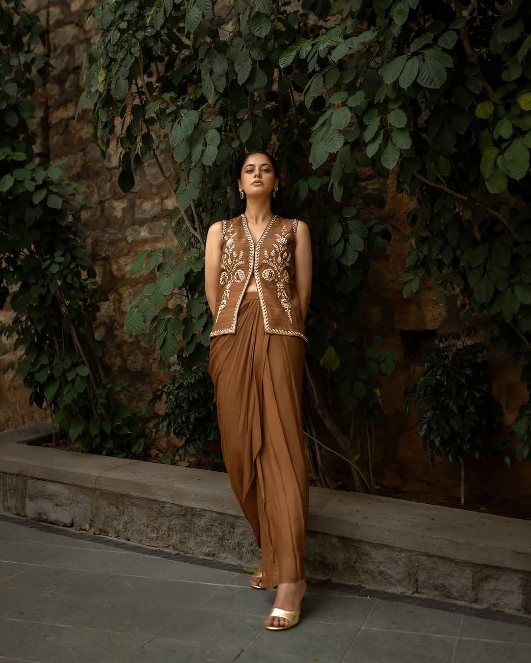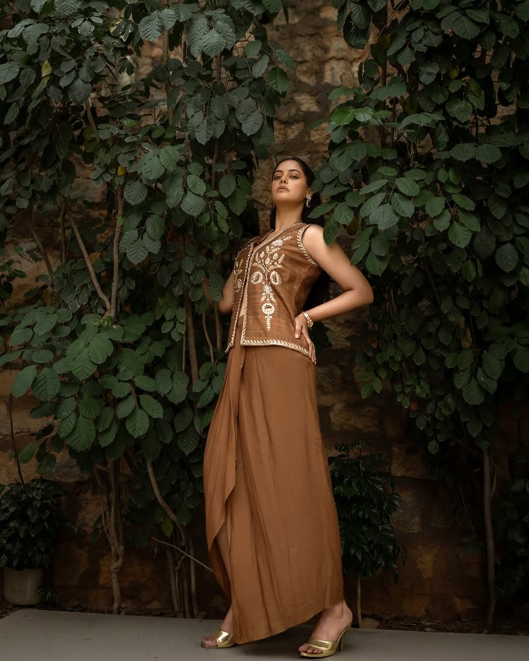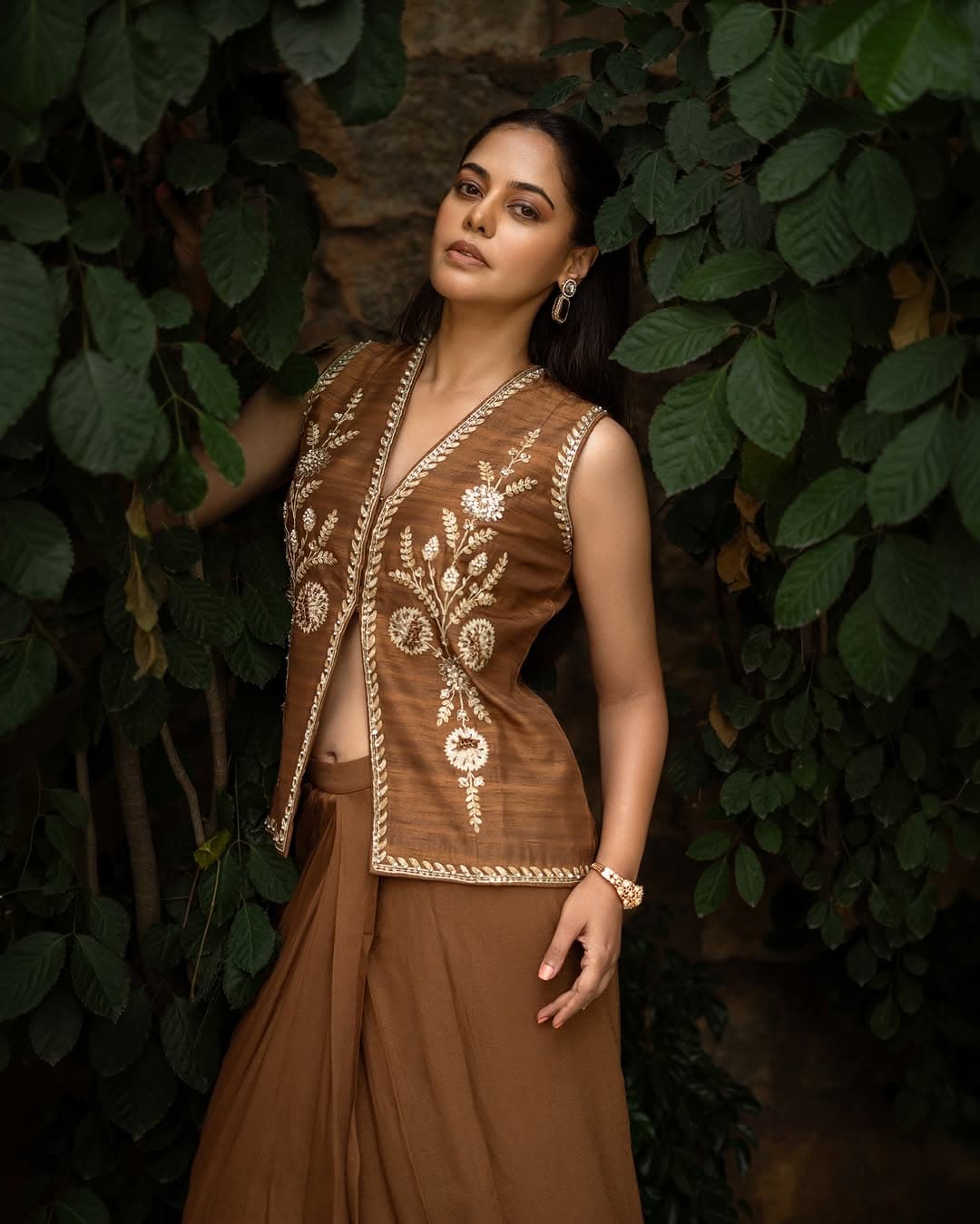 భూమి రంగు దుస్తుల్లో బిందు మాధవి సొగసును, ఆత్మవిశ్వాసాన్ని అద్భుతంగా ప్రదర్శించింది. ప్రకృతి నేపథ్యంతో కలిసి ఆమె లుక్ మరింత శాంతి, సౌందర్యాన్ని ప్రతిబింబిస్తోంది.