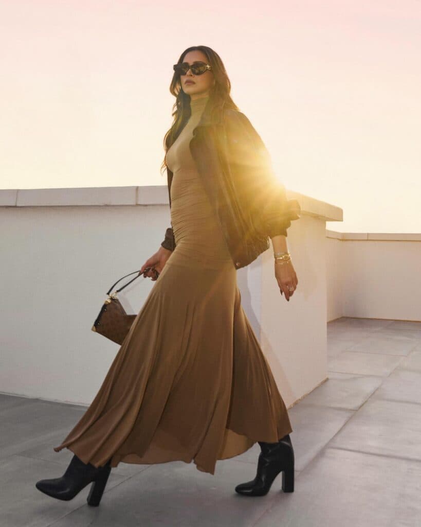 అల్లుఅర్జున్తో ఆమె సై-ఫై సినిమాను చేస్తూనే, అబూదాబి గ్రాండ్ ప్రీకి వచ్చిన దీపికా పదుకోణె చాలా ఈజీగా స్టైలిష్గా కనిపించింది. మాగ్డా బుట్రిమ్ హై-నెక్ మ్యాక్సీ డ్రెస్కు లెదర్ ఏవియేటర్ జాకెట్ని మ్యాచ్ చేసి, సాఫ్ట్ ఎలిగెన్స్కి చిక్ రగ్డ్ టచ్ ఇచ్చింది.