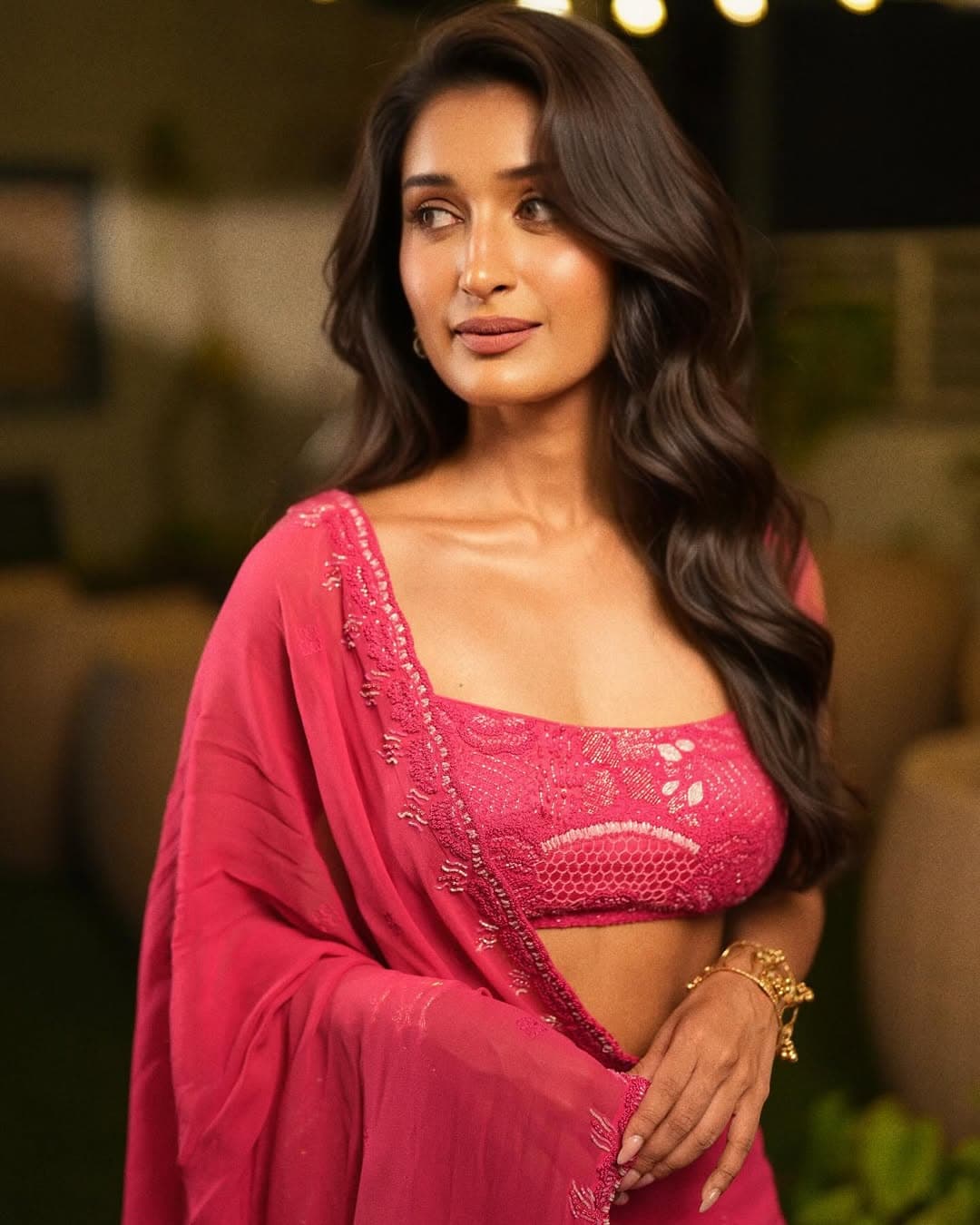 ప్రకాశవంతమైన ఫ్యూషియా పింక్ చీరలో నిహారికా NM అద్భుతంగా మెరిసింది. ఎంబ్రాయిడెడ్ బ్లౌజ్, షీర్ పళ్ళు, సహజమైన హెయిర్ స్టైల్—all కలిసి ఆమెకు క్లాసీ ఎలిగెన్స్ ఇచ్చాయి. ఇన్స్టాగ్రామ్, యూట్యూబ్లో తన ఫన్ మరియు రిలేటబుల్ వీడియోలతో పేరు పొందిన నిహారికా, ఇప్పుడు టాలీవుడ్లో మిత్ర మండలి సినిమాతో ఎంట్రీ ఇస్తోంది. ఈ చిత్రాన్ని గీతా ఆర్ట్స్ నిర్మించగా, బన్నీ వాస్ తన కొత్త బ్యానర్ BV Works ద్వారా సమర్పిస్తున్నారు. ప్రియదర్శి, రఘు మయూర్, విష్ణు Oi, ప్రసాద్ బెహరా ఈ సినిమాలో ముఖ్య పాత్రల్లో కనిపిస్తారు. పోస్టర్లు, టీజర్, పాటలు ఇప్పటికే మంచి స్పందన పొందాయి. దీపావళి సందర్భంగా అక్టోబర్ 16న సినిమా విడుదల కానున్నందున ఫ్యామిలీ & ఫ్రెండ్స్తో చూడడానికి అభిమానులు ఆసక్తిగా ఎదురుచూస్తున్నారు. విజయేందర్ S దర్శకత్వం వహించిన ఈ చిత్రం ఫ్రెండ్షిప్ థీమ్పై సాగుతుంది. RR ధ్రువన్ సంగీతం, సిద్ధార్థ్ SJ సినిమాటోగ్రఫీ, సప్త అశ్వ మీడియా వర్క్స్ మరియు వైరా ఎంటర్టైన్మెంట్స్ ప్రొడక్షన్ సపోర్ట్ అందిస్తున్నాయి.