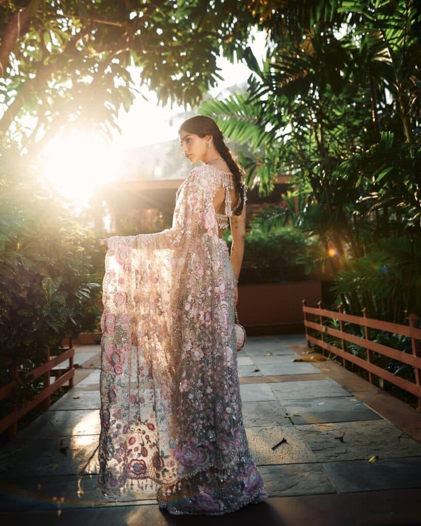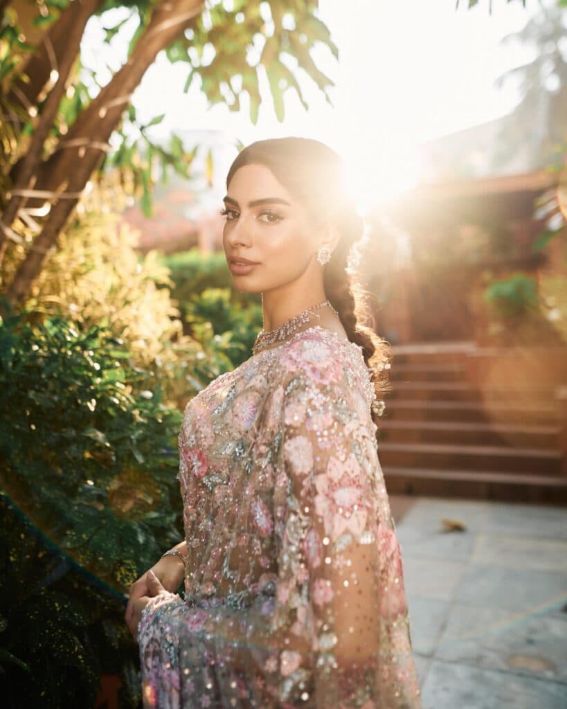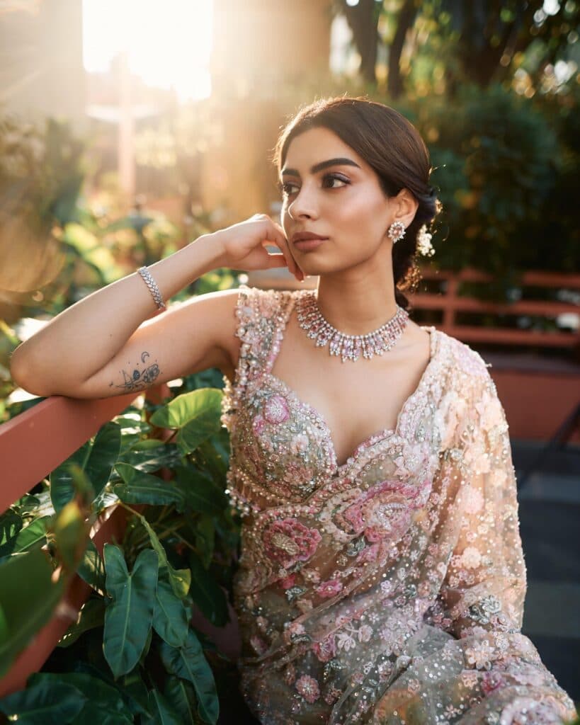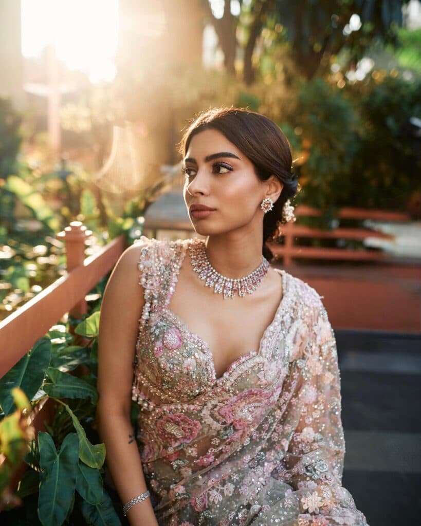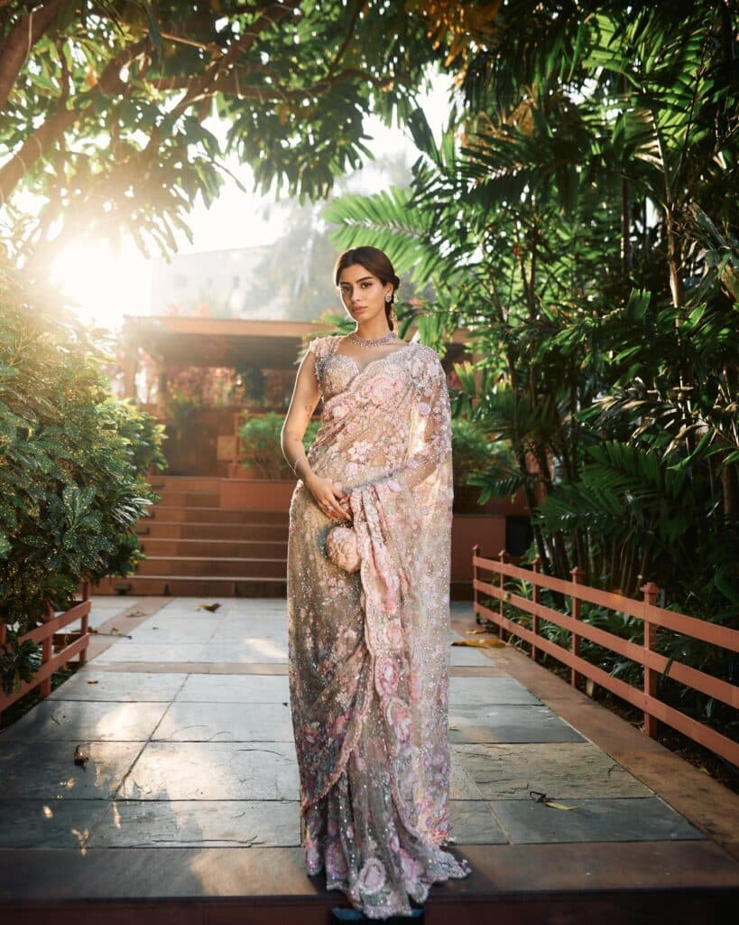 ప్రస్తుతం మామ్ 2 షూటింగ్లో ఉన్న ఖుషి కపూర్, తాజాగా కొన్ని అందమైన ఫోటోలను షేర్ చేసింది. ఉదయం మృదువైన వెలుతురులో పాస్టెల్ గ్లిటరీ చీర కట్టుకుని నిలబడి ఉండగా, ఆ చీర స్వయంగా వెలిగినట్లుగా అనిపిస్తోంది. కాసేపు బయటికి వచ్చి నిలబడగా ఎవరైనా ఆ పర్ఫెక్ట్ మూమెంట్ను క్లిక్ చేసినట్టుగా ఆ ఫోటోలకు ఓ శాంతమైన వైబ్ ఉంది. చీరపై ఉన్న సన్నని పువ్వుల డిజైన్లు, మెరుపులు చూపరులను ఆకట్టుకుంటాయి. లుక్కి మ్యాచ్ అయ్యే చిన్న క్లచ్ను ఆమె సింపుల్గా పట్టుకుని ఉంది. ఆభరణాలు కూడా ఎక్కువ కాకుండా, తక్కువ కాకుండా అవసరమైనంత మాత్రమే. చుట్టూ ఉన్న పచ్చదనం ఆమె లుక్ని మరింత హైలైట్ చేస్తోంది. ఇటీవలి కాలంలో ఖుషి చాలా సెలెక్టివ్గా పోస్టులు పెడుతూ ఉండటంతో, ఆమె షేర్ చేసే ప్రతి ఫోటో కూడా వెంటనే చర్చనీయాంశమవుతోంది.
