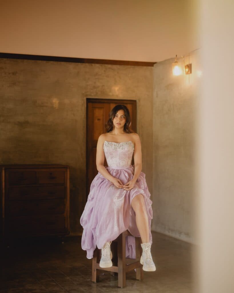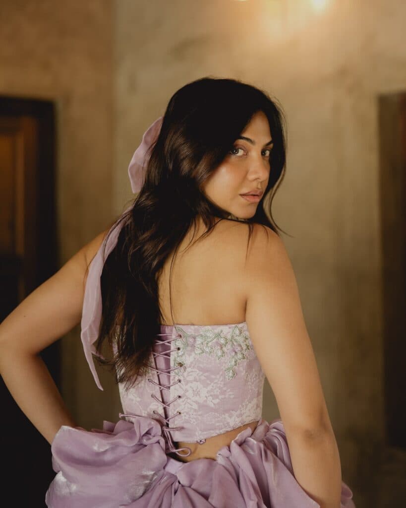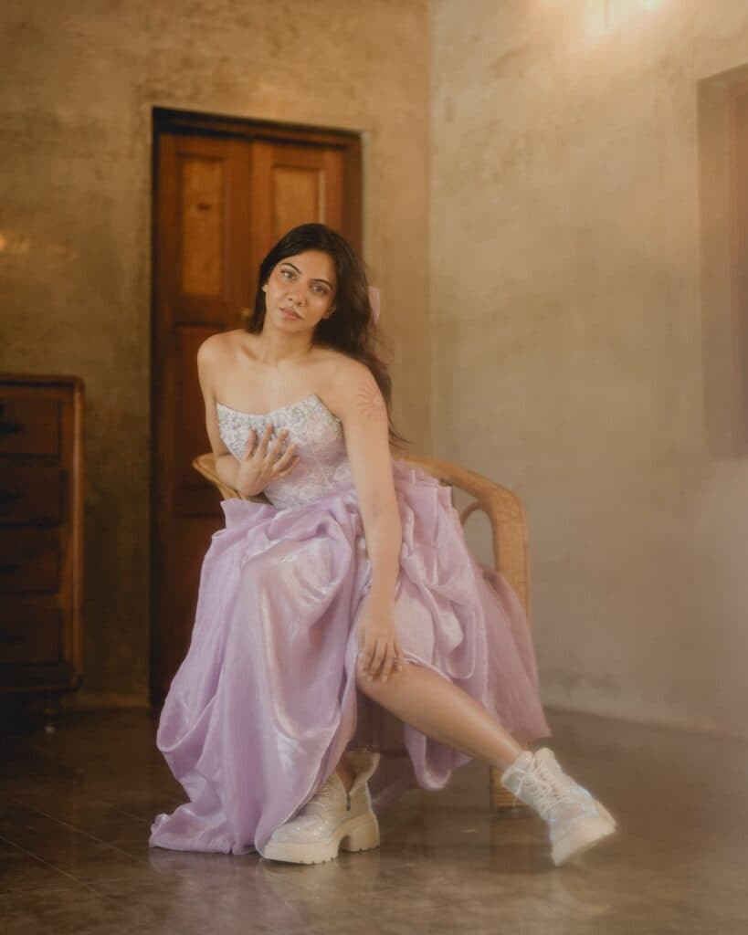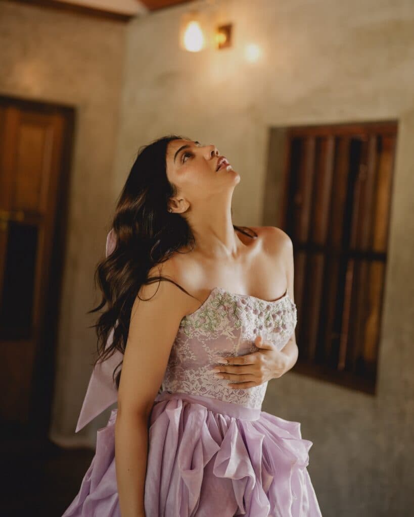 పాస్టెల్ లైలాక్ గౌన్లో మడోనా సెబాస్టియన్ ఎంతో సొగసుగా కనిపించింది. ప్రవహించేలా ఉన్న డ్రెస్కు చంకీ బూట్స్ ప్రత్యేకమైన కాంట్రాస్ట్ను జోడించి, లుక్కు మోడ్రన్ టచ్ ఇచ్చాయి.