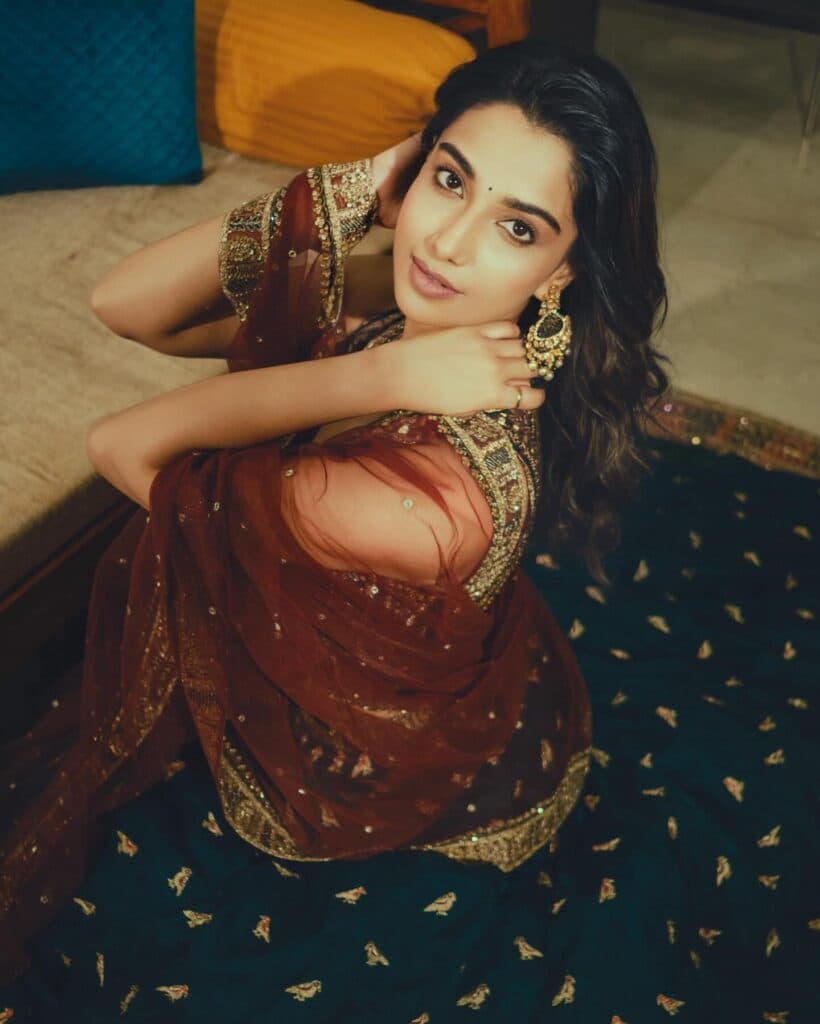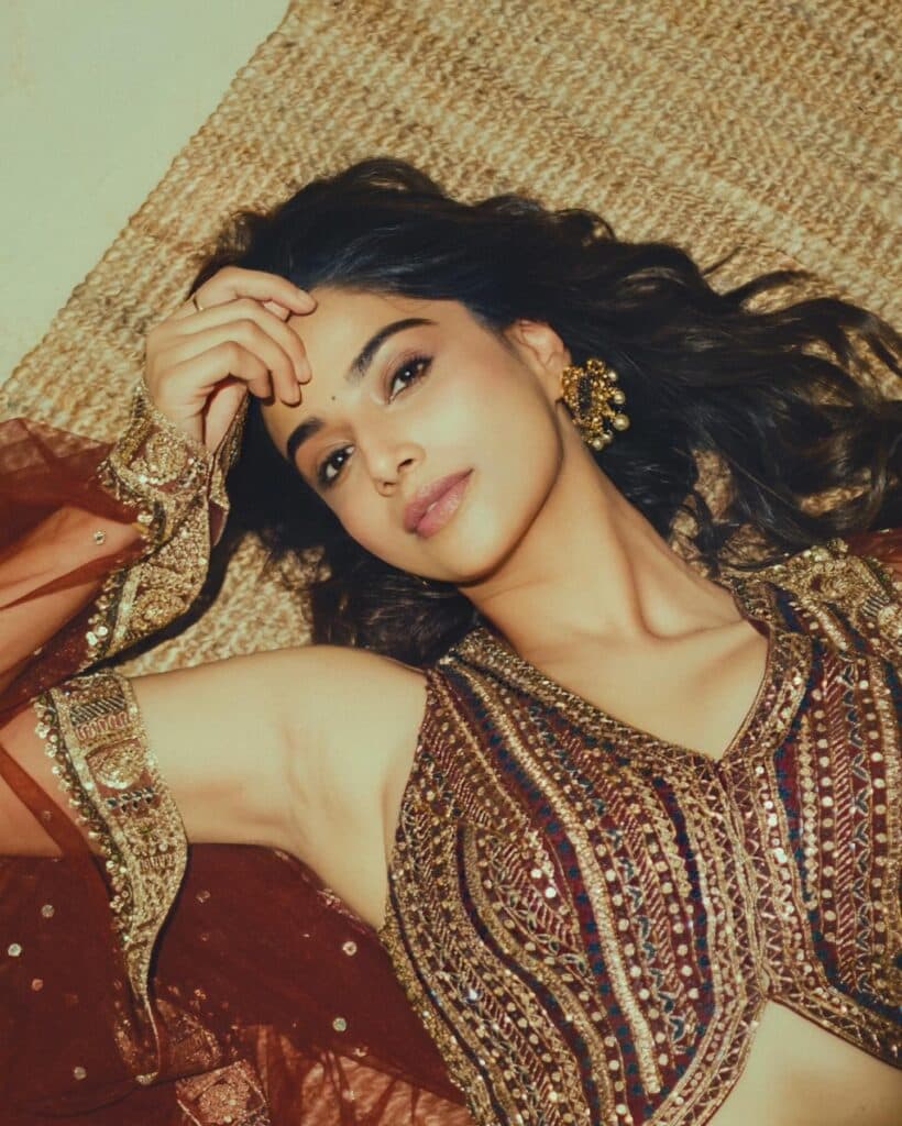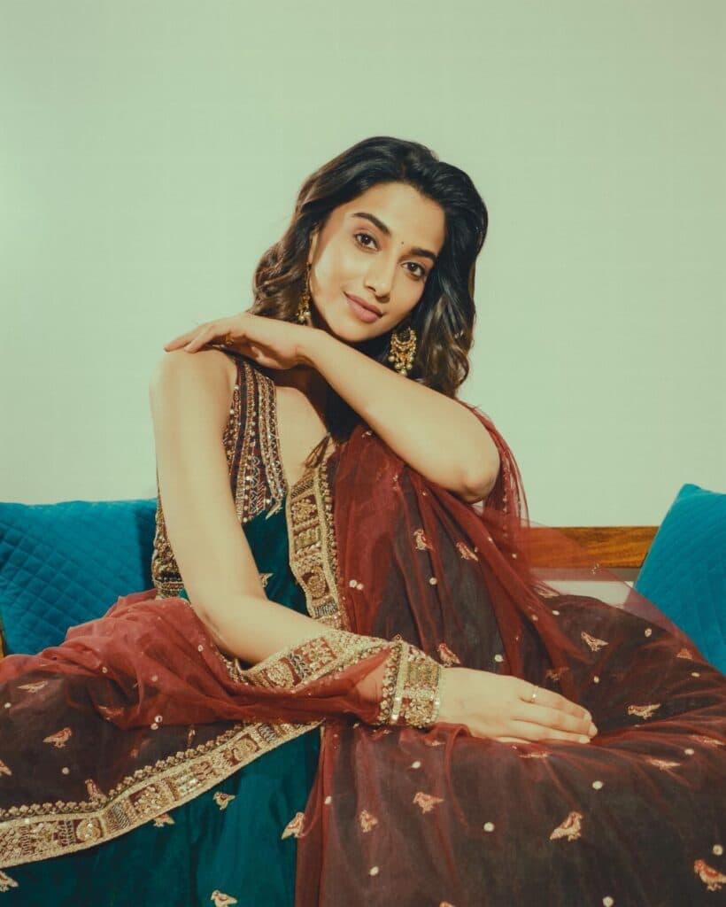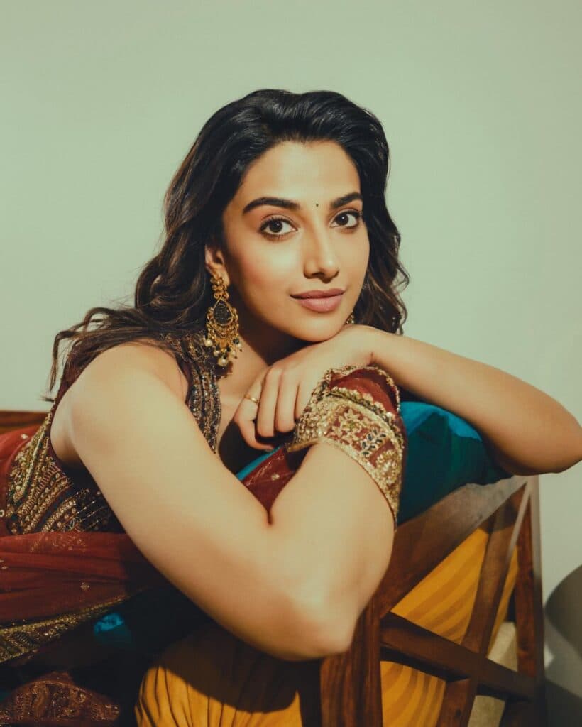 సాంప్రదాయ వేషధారణలో మీనాక్షి చౌదరి ఎంతో ఆకర్షణీయంగా కనిపిస్తున్నారు. ఆమె నాజూకైన హావభావాలు, ఆత్మవిశ్వాసం ప్రత్యేకంగా మెప్పిస్తున్నాయి. ఈ క్లాసిక్ లుక్ అభిమానులను మంత్రముగ్ధులను చేస్తోంది.