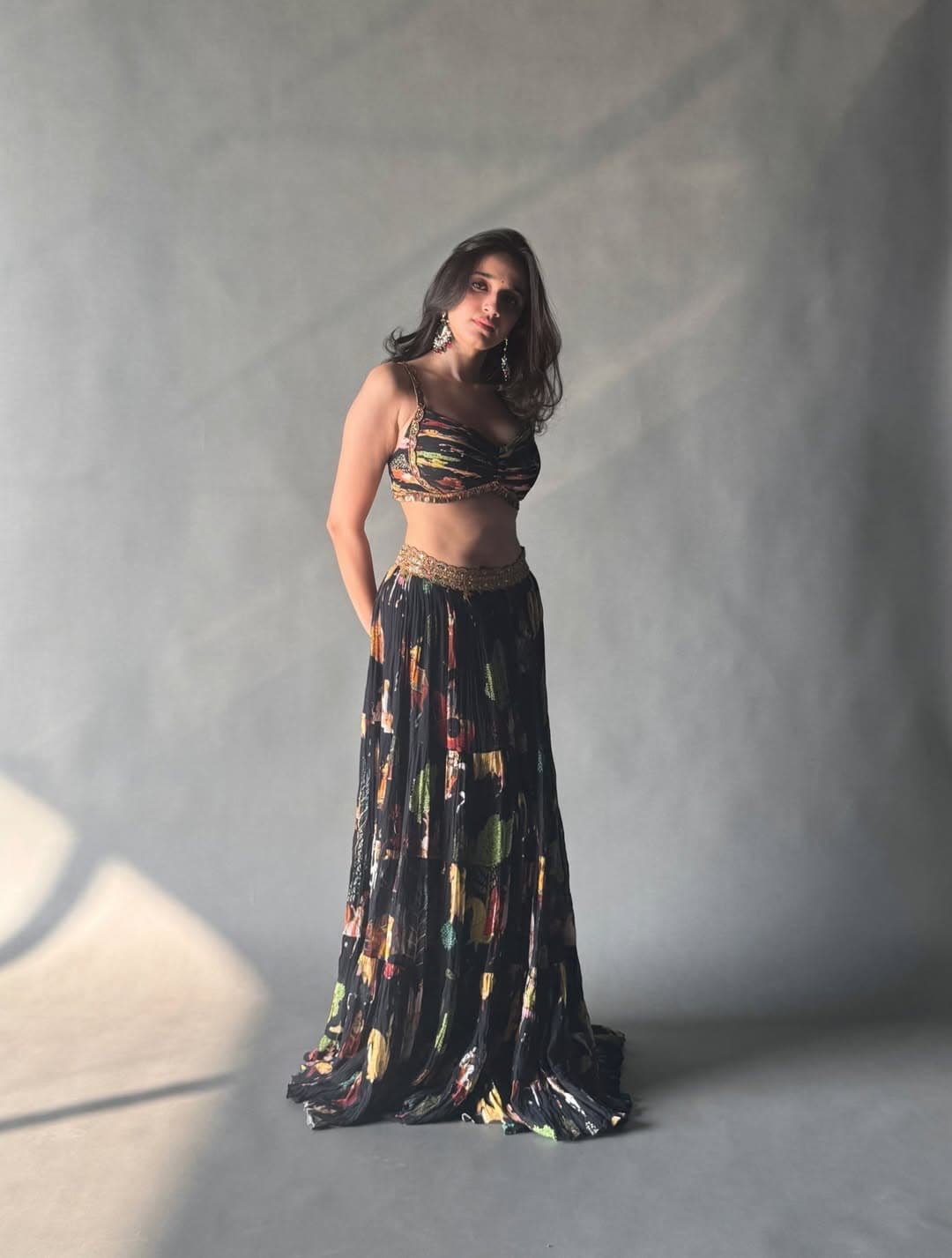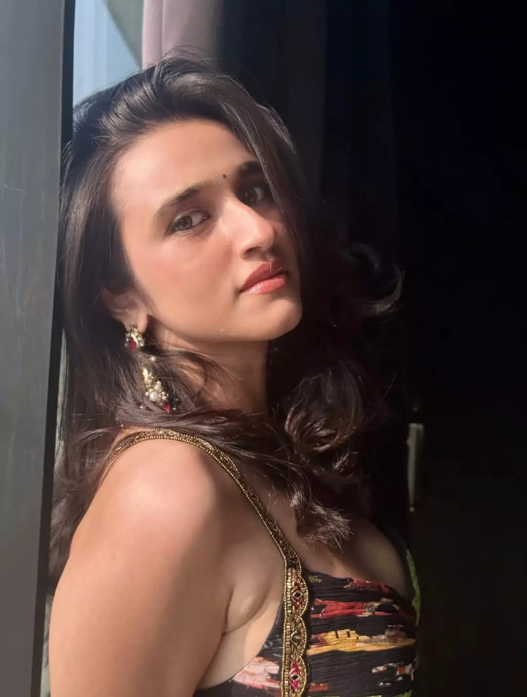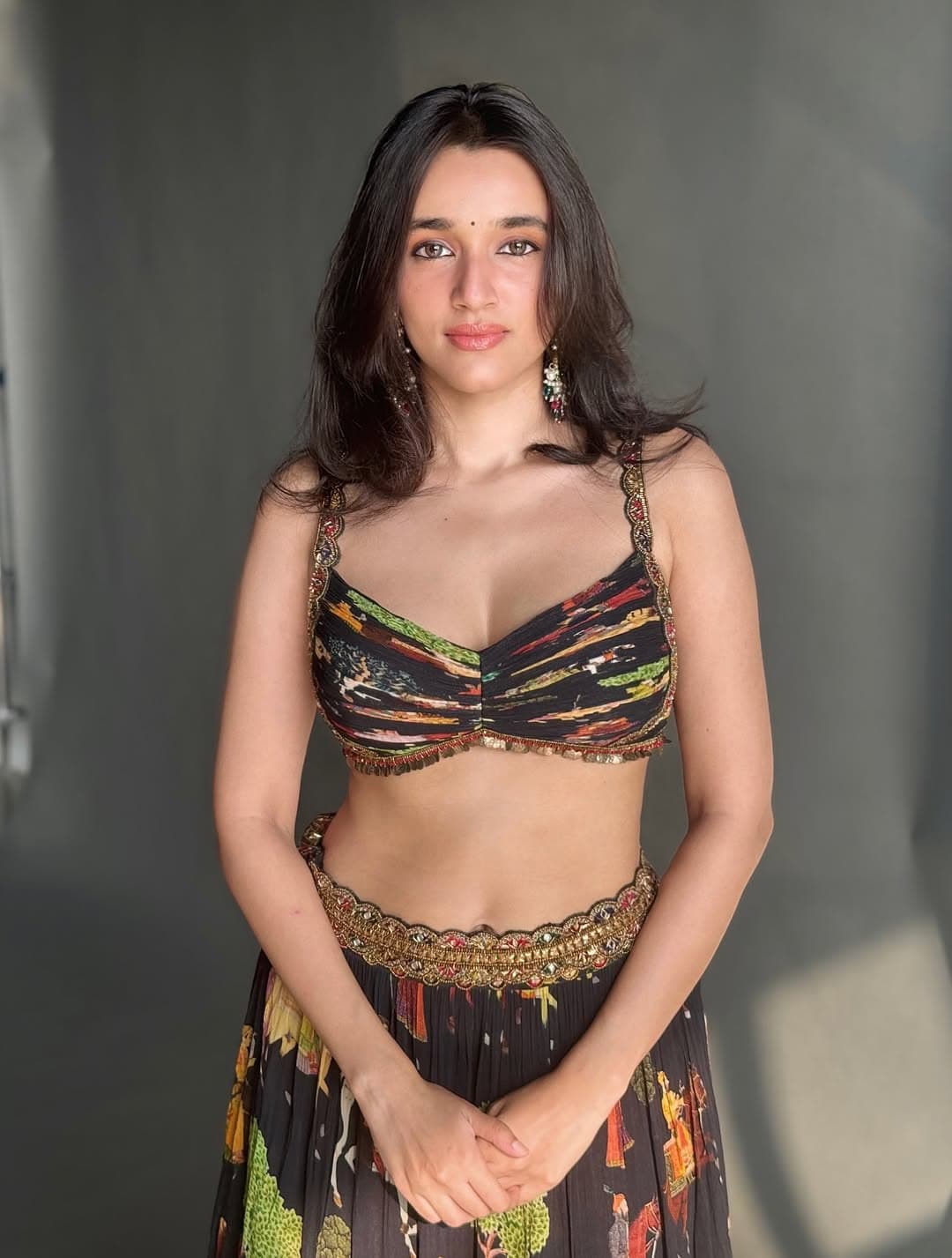 నువేక్ష సహజమైన ముఖ కాంతి, సరళమైన అలంకరణ ఆమె సౌందర్యాన్ని మరింత ఉట్టిపడేలా చేస్తున్నాయి. ఆమె ధరించిన లెహెంగా చోళీ రంగుల సమ్మేళనంతో, నాజూకైన పనితనంతో ఎంతో ఆకర్షణీయంగా కనిపిస్తోంది. సహజంగా మెరిసే ఆమె అందం ప్రత్యేక ఆకర్షణగా నిలుస్తోంది.