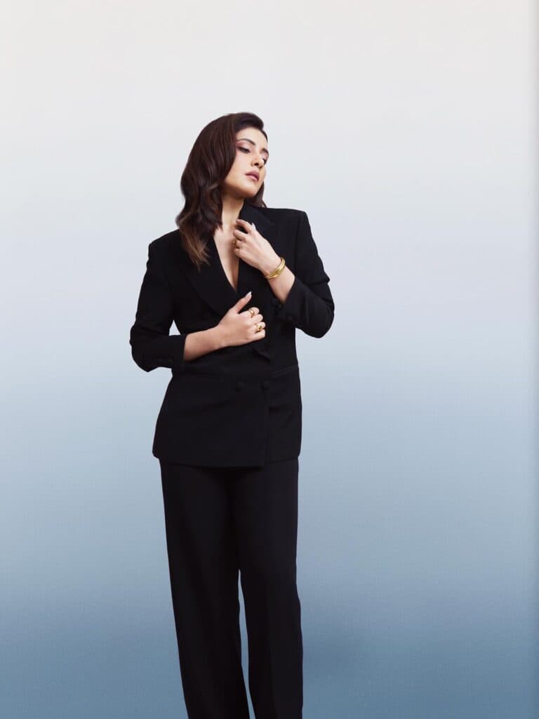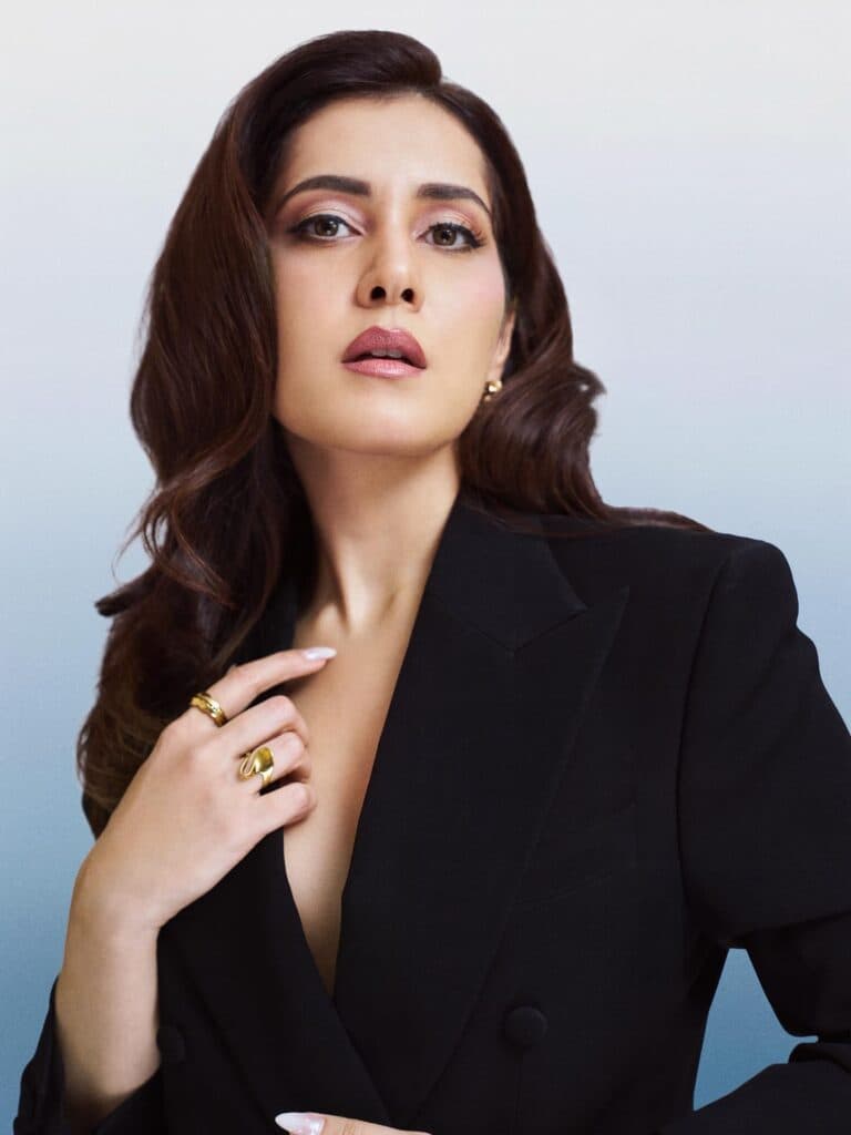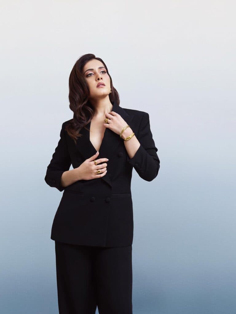ఎప్పుడూ రంగురంగుల, వెలుగుల ఔట్ఫిట్స్లో కనిపించే రాశి ఖన్నా, ఈసారి గ్రాజియా కోసం ఆల్ బ్లాక్ లుక్లో మ్యాజిక్ చేసింది. బ్రేక్థ్రూ పెర్ఫార్మర్ అవార్డ్ తీసుకోడానికి వచ్చిన ఆమె, బ్లాక్ పవర్సూట్కి గోల్డ్ ఆభరణాలు జతచేసి బాస్ లేడీ వైబ్ను సెట్ చేసింది. ఓపెన్ హెయిర్, మినిమల్ స్టైలింగ్, కాన్ఫిడెంట్ అటిట్యూడ్తో ఫోటోఫ్రేమ్ మొత్తాన్నీ అదరగొట్టింది.