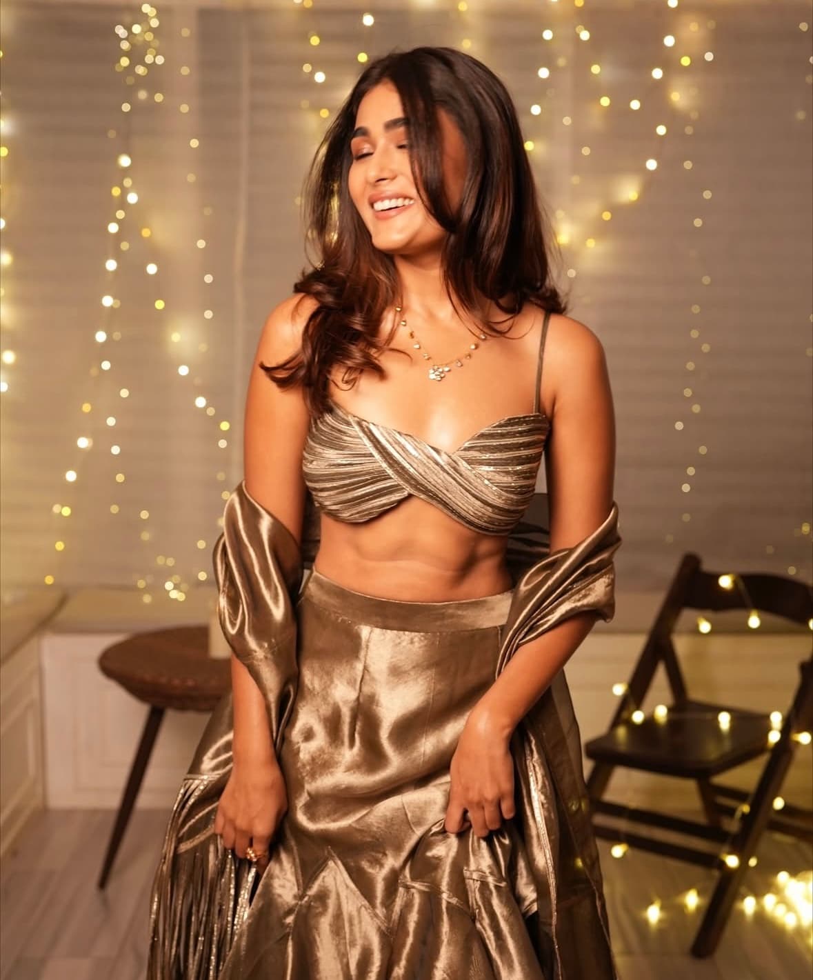 ఈ దీపావళికి నటి షాలిని పాండే తన అద్భుతమైన పండుగ లుక్ తో సోషల్ మీడియాను వెలిగించారు. మెరిసే బంగారు రంగు దుస్తులను ధరించి, మెరిసే లైట్ల నేపథ్యంలో ఆమె చక్కదనం మరియు చక్కదనాన్ని వెలిగించారు. ఆమె ప్రకాశవంతమైన చిరునవ్వు మరియు అప్రయత్నమైన ఆకర్షణ పండుగ స్ఫూర్తికి వెచ్చదనాన్ని జోడించాయి. అభిమానులు ఆమె దీపావళి లుక్ ను కేవలం ఉత్కంఠభరితంగా అభివర్ణిస్తూ ప్రశంసలతో వ్యాఖ్యలను ముంచెత్తారు.