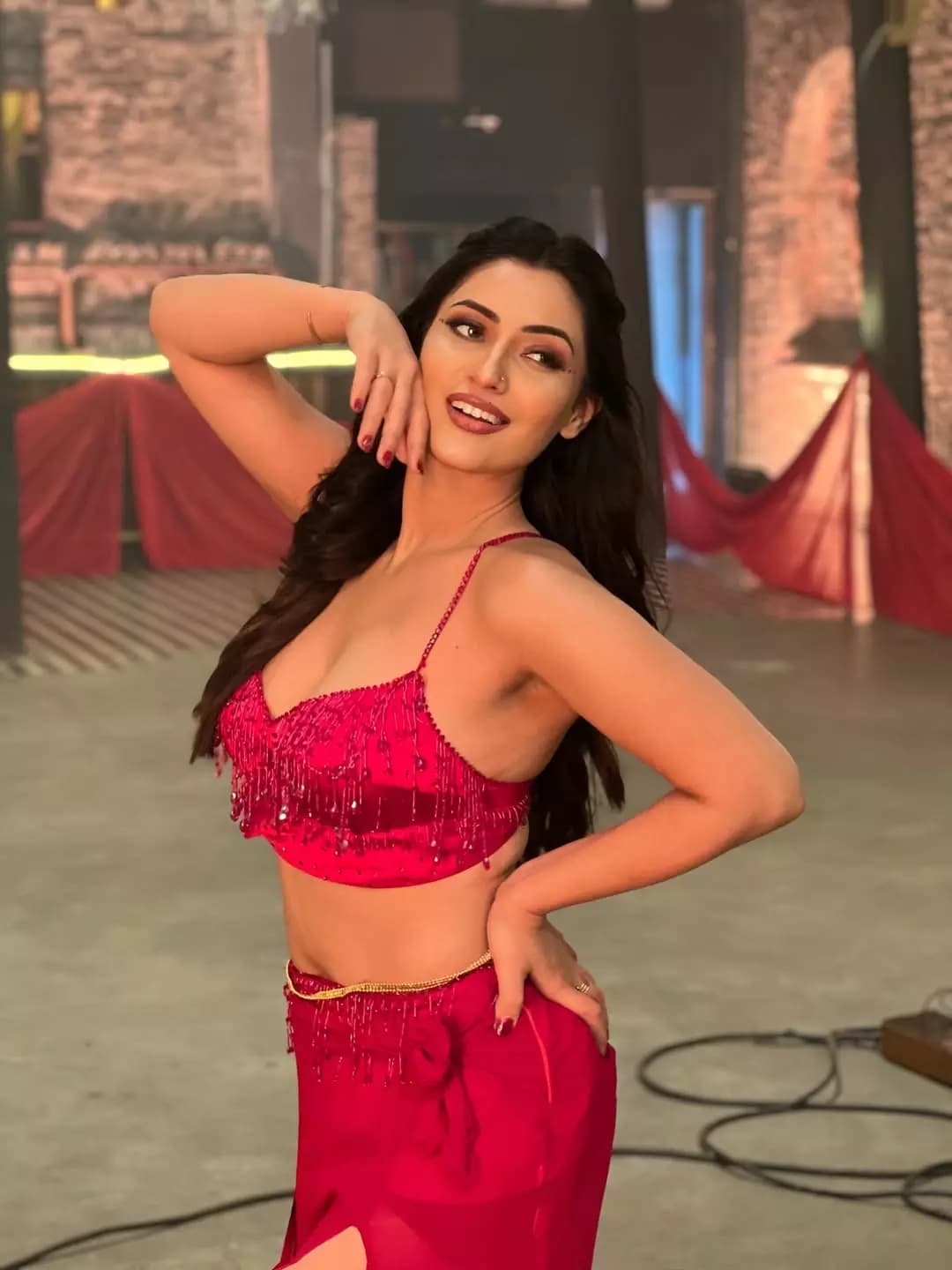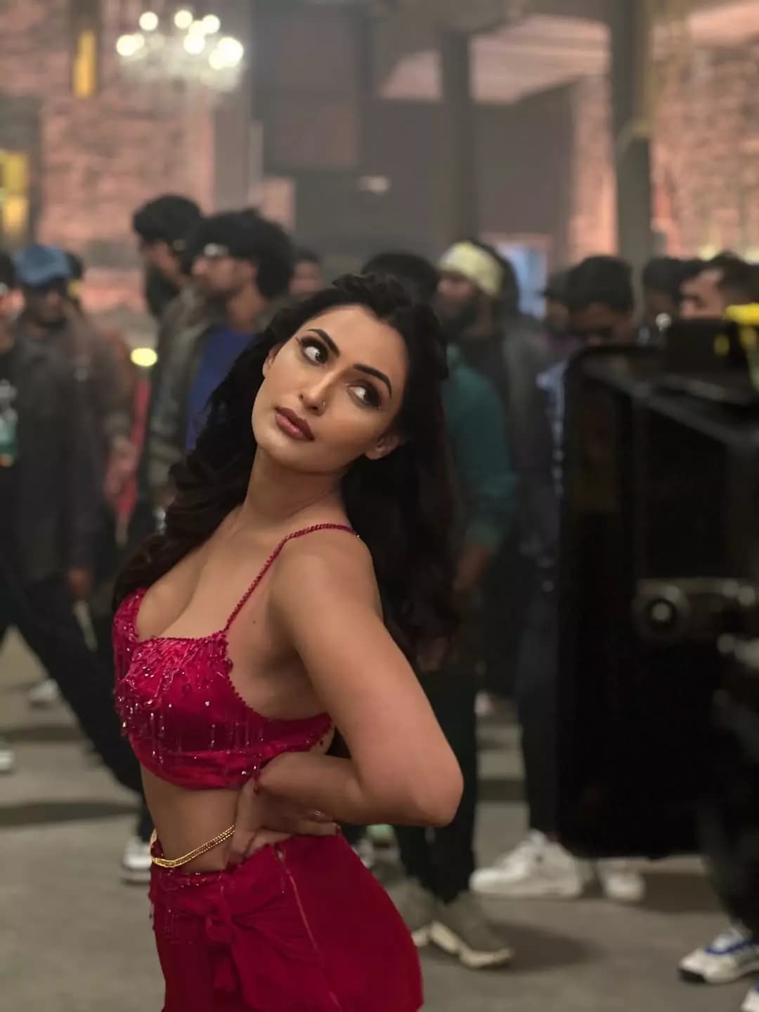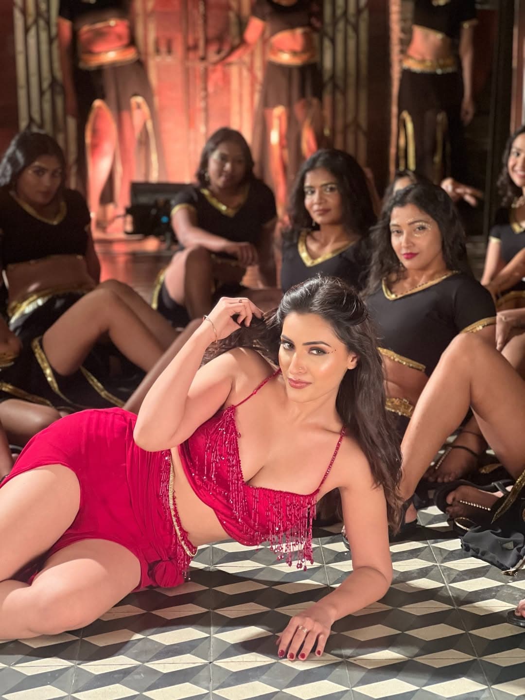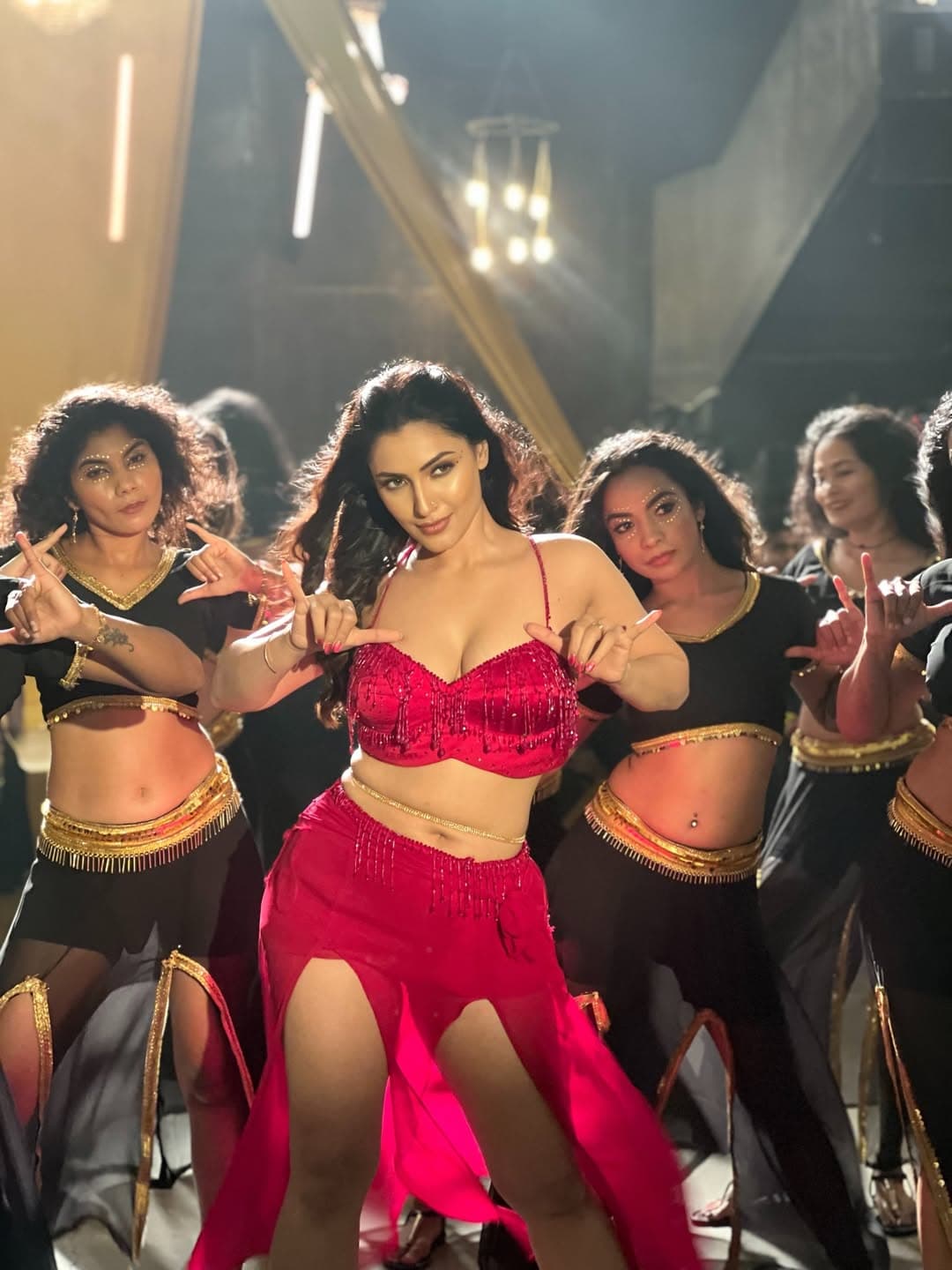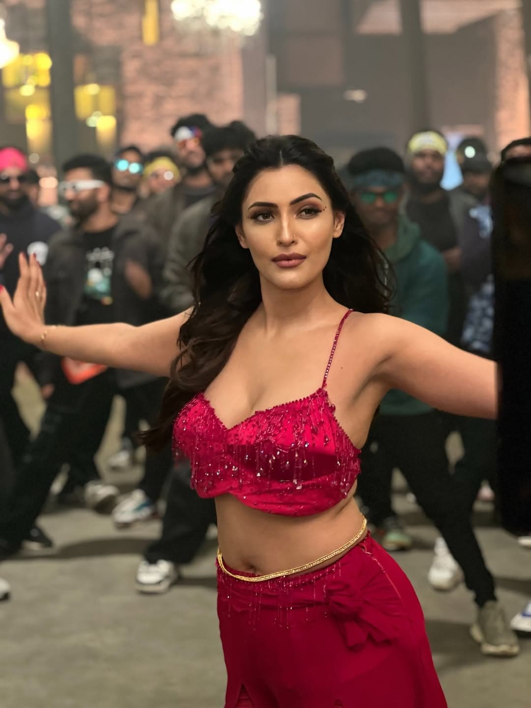 టెరర్ సాంగ్లో శివంగి వర్మ తన స్టైలిష్ రెడ్ లుక్తో సోషల్ మీడియాలో ట్రెండ్ అవుతోంది. షిమ్మరింగ్ సీక్విన్ బ్రాలెట్, ఫ్లోయింగ్ డ్రేప్డ్ స్కర్ట్, గోల్డెన్ వెస్ట్ చైన్తో ఆమె లుక్ పూర్తిగా గ్లామ్ వైబ్ ఇస్తోంది. స్పార్క్లింగ్ హీల్స్తో స్టైలింగ్ను కంప్లీట్ చేసి, మోడ్రన్ ఫ్యాషన్ స్టేట్మెంట్గా నిలిచింది.