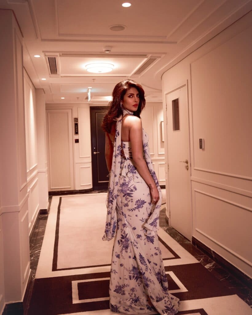 ప్రియాంక ఫ్లోరల్ లుక్లో సైలెంట్ గ్లామ్ విరాజిస్తోంది. స్ట్రాప్లెస్ టాప్ సింప్లిసిటీకి కొంచెం బోల్డ్ స్పర్శ ఇస్తూ, పొడవైన, అందమైన డ్రేప్ పాతకాలపు చార్మ్ను ప్రతిబింబిస్తోంది. లైట్ మేకప్ మరియు సహజమైన హెయిర్ స్టైల్, ఆమె సహజ ఆకర్షణను చూపిస్తూ, కేవలం ఉనికితోనే ఫోకస్ సొంతం చేసుకుంటోంది.