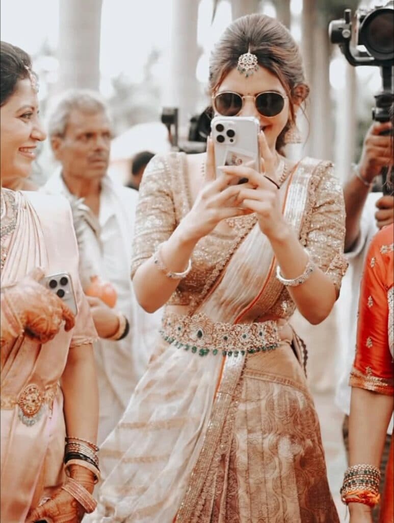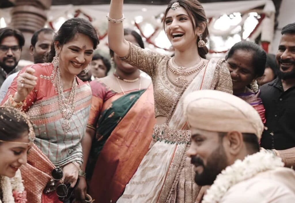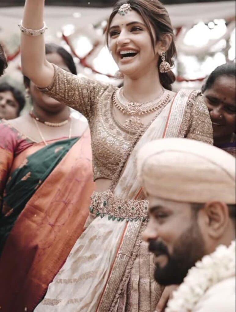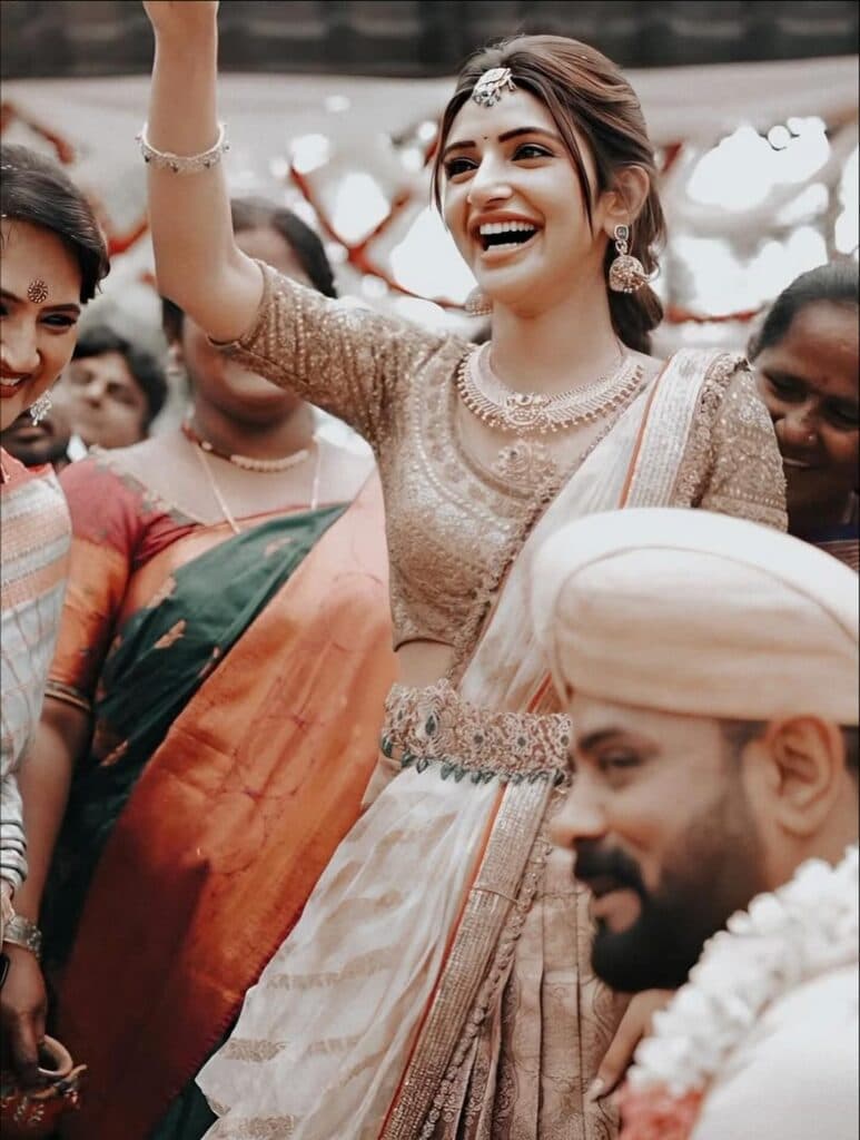 నటి శ్రీలీల ఇటీవల తన వైరల్ పోస్ట్తో పాటు రాబోయే సినిమాలతో వార్తల్లో నిలుస్తోంది. ఆమె ఒక కుటుంబ పెళ్లి వేడుక నుండి ఫోటోలను పంచుకోగా, ఆమె ప్రకాశవంతమైన చిరునవ్వు, సహజసిద్ధమైన ఆకర్షణ అందరినీ ఆకట్టుకున్నాయి. ఆమె తెల్లటి లెహంగా, బంగారు ఎంబ్రాయిడరీ చేసిన బ్లౌజ్, అనేక ఆభరణాలతో అద్భుతంగా కనిపించి, పండుగ శోభను వెదజల్లింది.