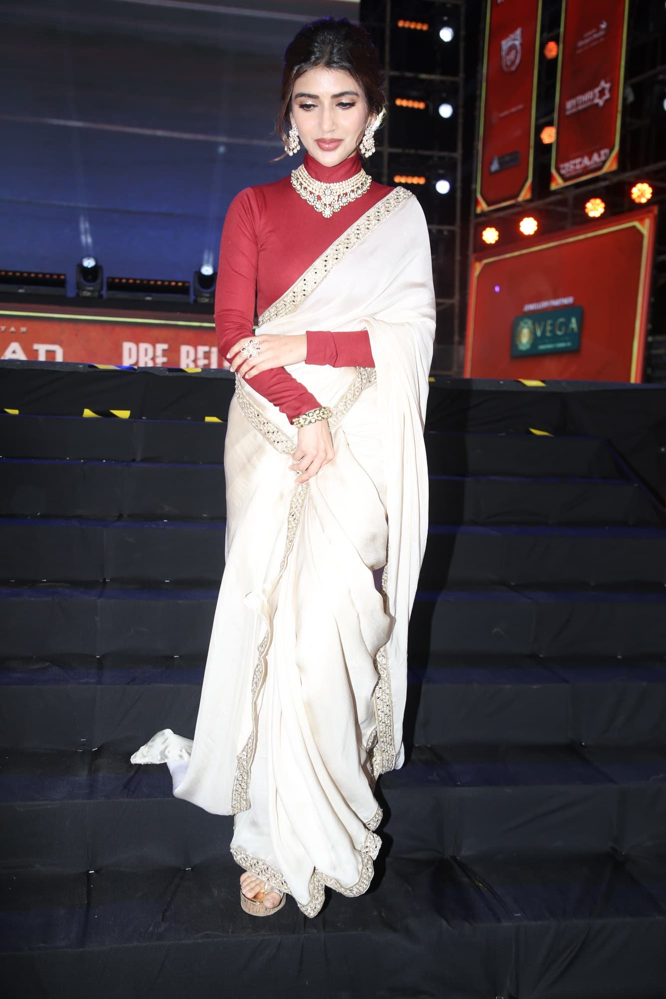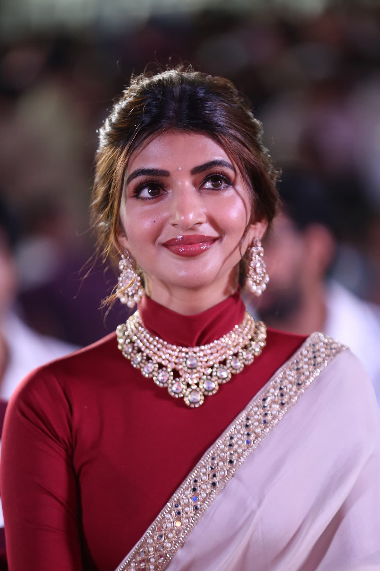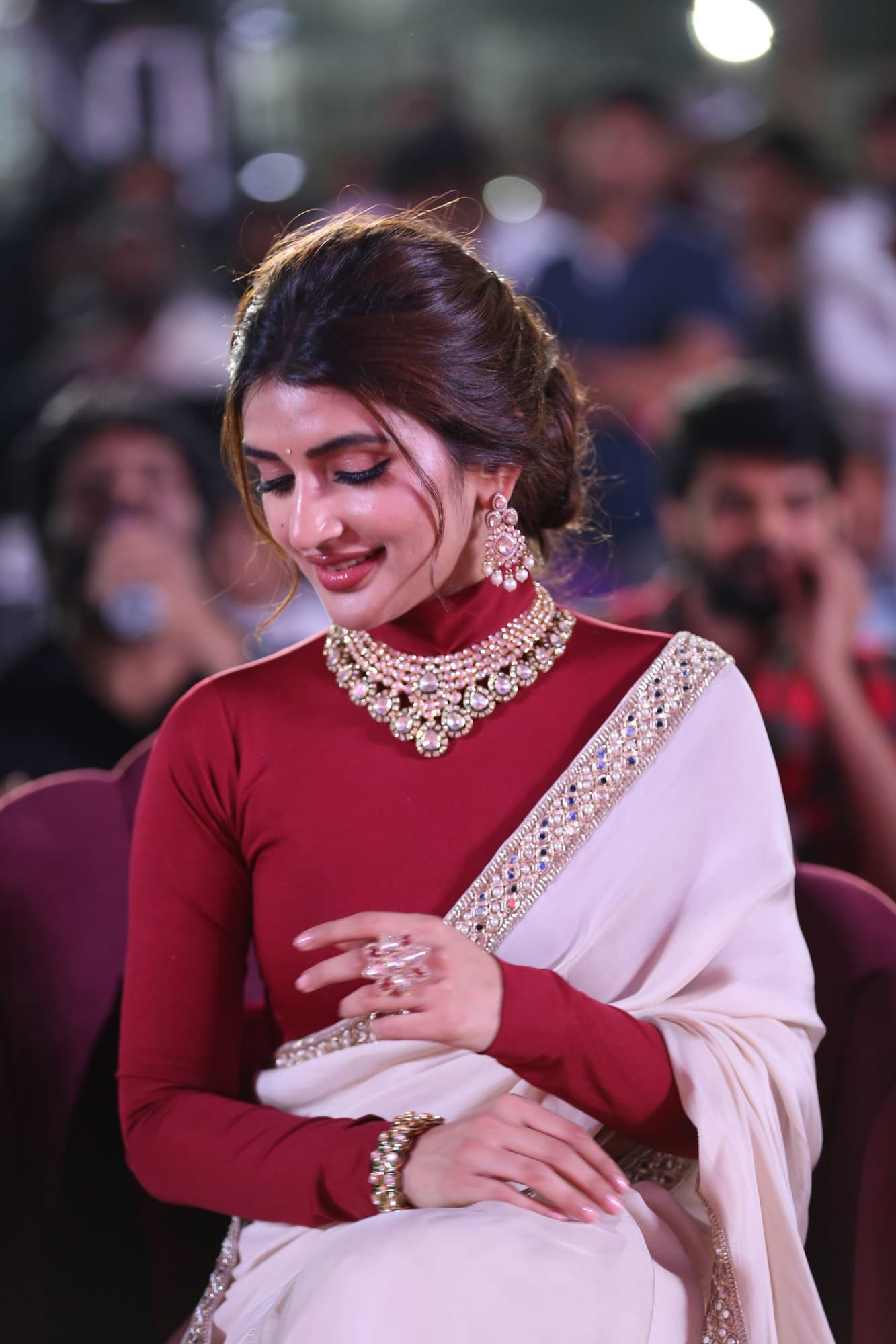 శ్రీలీల తన సహజమైన అందంతో, మృదువైన చిరునవ్వుతో ఎంతో మనోహరంగా కనిపిస్తున్నారు. తెలుపు చీరకు అందమైన ఆభరణాలు జోడించి ఆమె ప్రదర్శించిన శైలీ ఎంతో సొగసుగా, శాంతమైన ఆకర్షణతో మెరిసిపోతుంది.