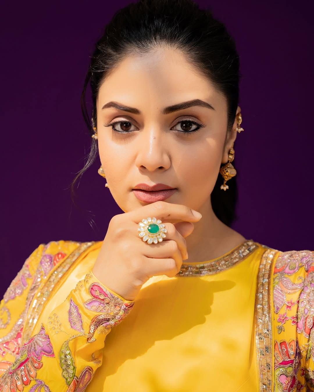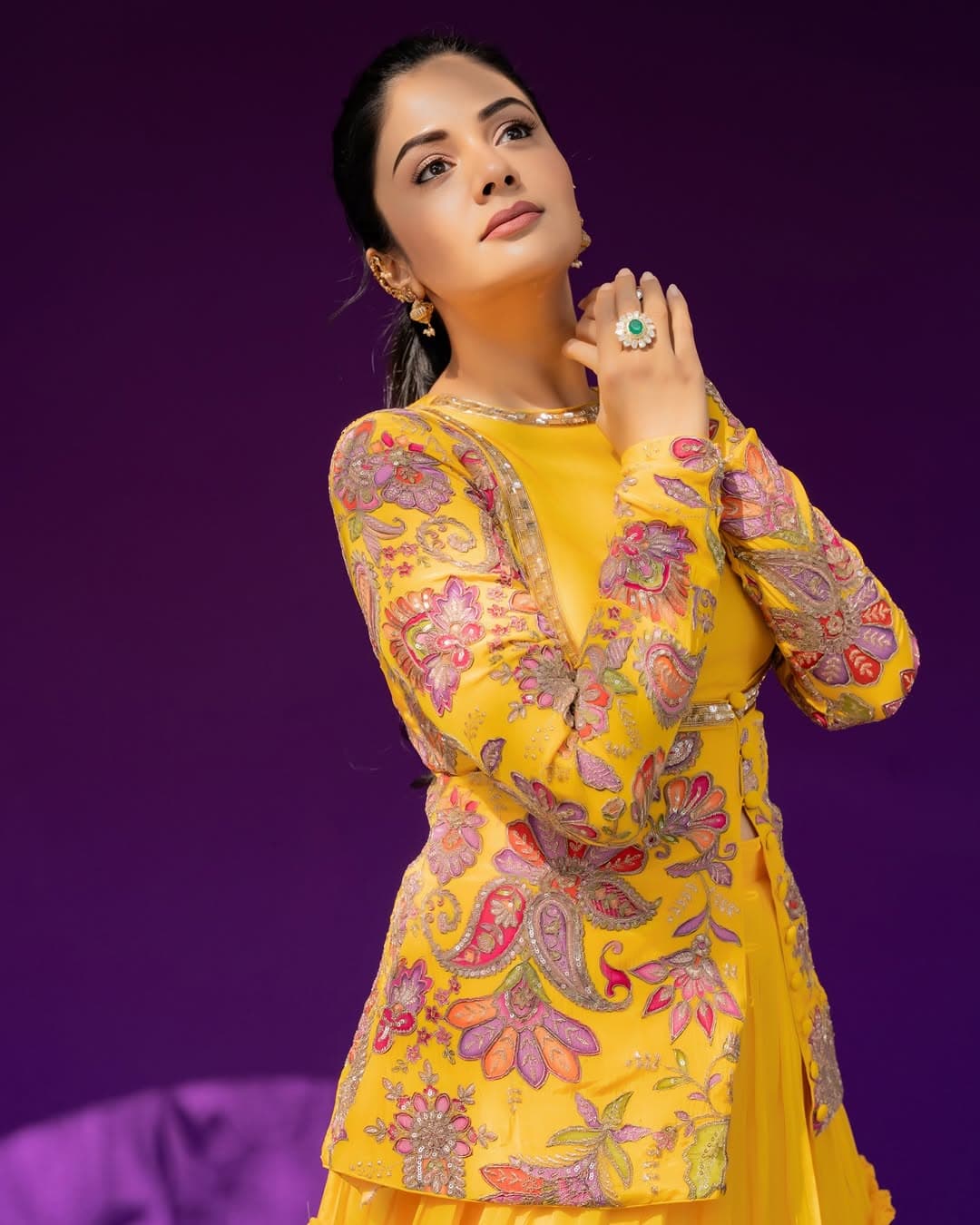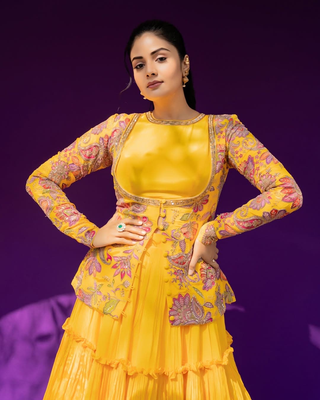 పసుపు రంగు దుస్తుల్లో శ్రీముఖి సాంప్రదాయం, స్టైల్ను అద్భుతంగా మేళవించింది. ఆమె అందం, గ్రేస్ ఈ లుక్ను మరింత ప్రత్యేకంగా నిలబెట్టాయి.