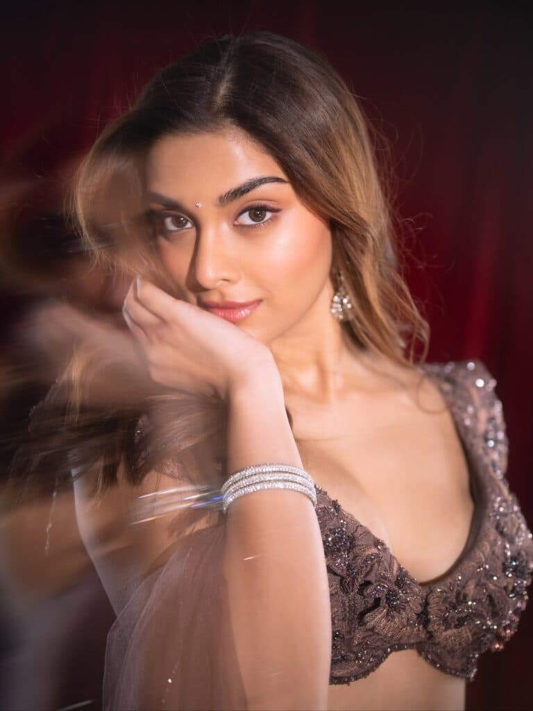 తెలుగు చిత్రాలైన మేజర్, స్కంద, అర్జున్: సన్ ఆఫ్ వైజయంతి వంటి సినిమాల్లో తన నటనకు పేరుగాంచిన సాయి మంజ్రేకర్, కొంతకాలంగా పెద్ద హిట్ అందుకోలేదు. మేజర్ విజయం తర్వాత ఆమె సినిమాలు అంతగా ఆకట్టుకోలేకపోయినప్పటికీ, ఆమె ఇప్పుడు శైలికే ప్రాధాన్యత ఇస్తున్నట్లు కనిపిస్తోంది. తాజాగా, ఆమె నల్లని ఎంబ్రాయిడరీ బ్రాలెట్ను దానికి సరిపోయే స్కర్ట్, దుపట్టాతో ధరించి, ఆత్మవిశ్వాసాన్ని వెదజల్లుతూ అందరి దృష్టిని ఆకర్షించింది.